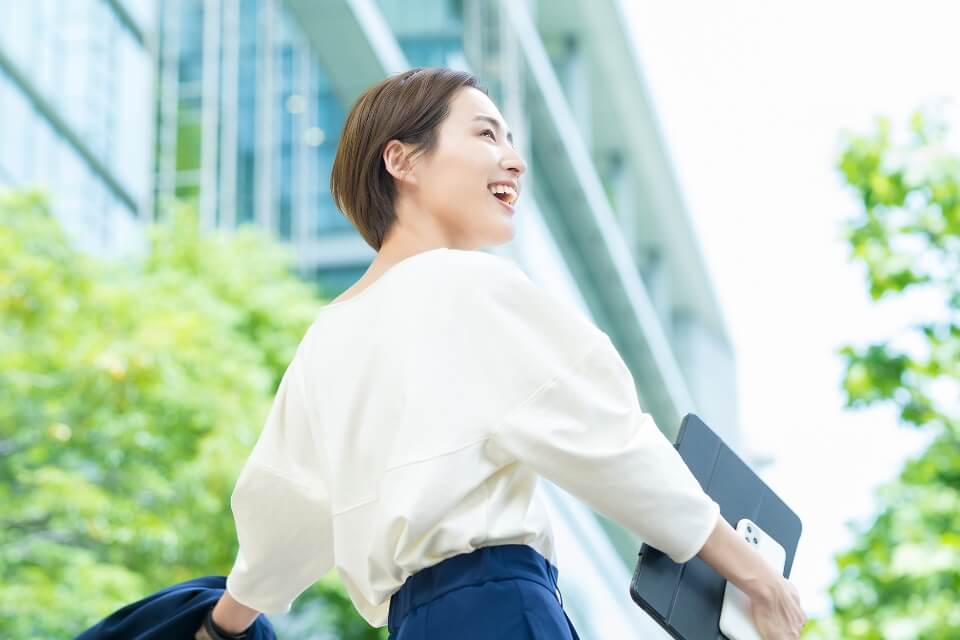 - 勤務時間を自由に設定できるフレックスタイム勤務制度では、始業・終業・コアタイムを条件として、様々な勤務時間を自由に設定できる制度です。